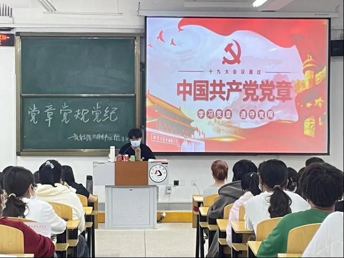 汪佳奕老师为大家讲授了以“党员入党流程”为主题的党课,向我们讲述了完整的党员入党流程,揭示了成为一名中国共产党的不容易,也坚定了我们入党的决心,和全心全意为人民服务的决心。