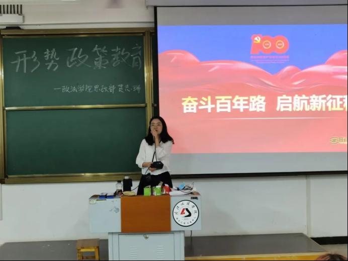 贺志瑞老师为我们讲授了以“形势政策教育”为主题的党课,主要围绕国家社会目前的建设发展情况,进一步加强对我们的形势教育。使我们坚定信念,关注国家大事,为人民服务的决心。