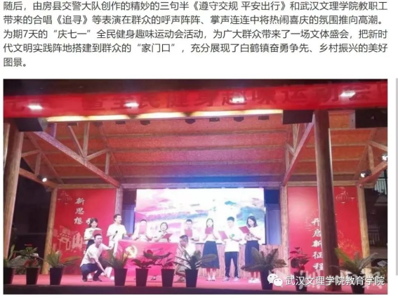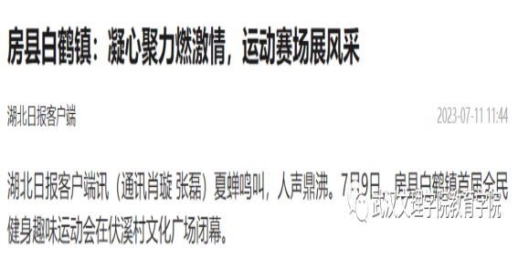 在“湖北日报”《房县白鹤镇:凝心聚力燃激情,运动赛场展风采》的专项报道中,本次SUNBET申博主题党日活动也被提及表扬,也共证了教育公司党总支与十堰市房县白鹤镇伏溪堰村的乡亲们的血浓乡情。