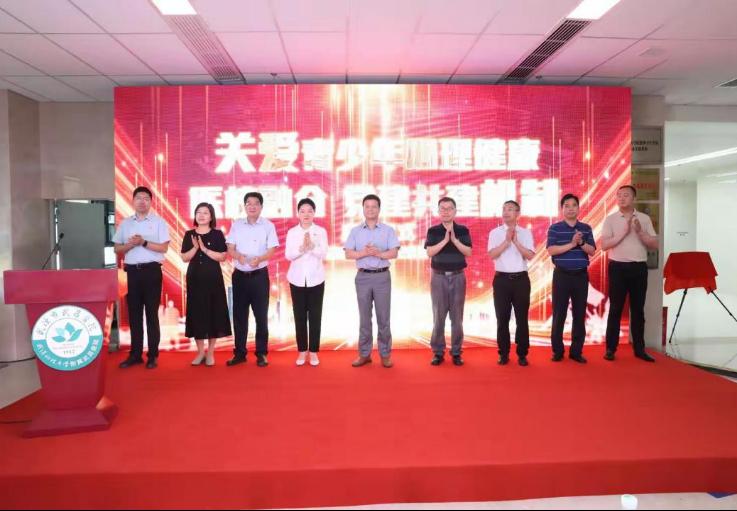 杜永成书记和武汉高公司党建代表一起,启动医校融合关爱青少年心理健康党建共建机制。