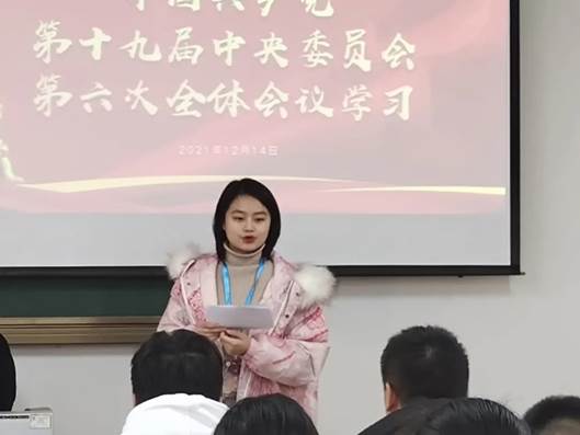 2021年12月14日中午,在SUNBET申博分团委的带领下,于4-401教室开展了学习“十九届六中全会”精神的专题学习会。