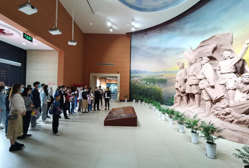 上午9点,全体人员参观了湘鄂西苏区革命烈士陵园。湘鄂西苏区革命烈士陵园,亦称湘鄂西苏区革命烈土纪念馆,坐落在洪湖市城区南郊,离市中心约1.5公里,占地面积40公顷。1978年10月,中共湖北省委为纪念贺龙、周逸群、段德昌等老一辈无产阶级革命家和湘鄂西苏区牺牲的革命烈士决定建园,1984年11月10日落成。在湘鄂西苏区革命历史陈列馆内,教师们通过珍贵的史料、图片和实物见证了历史的一幕幕场景。往事如烟,忠魂悠然。将军一去不复返。但当年用鲜血和生命所锻造的革命精神却穿越时空的隧道,催动老区儿女把家乡建设成先辈期待的美好家园。正如贺龙元帅的题词一样,“革命烈士们的业绩鼓舞着我们永远前进”。