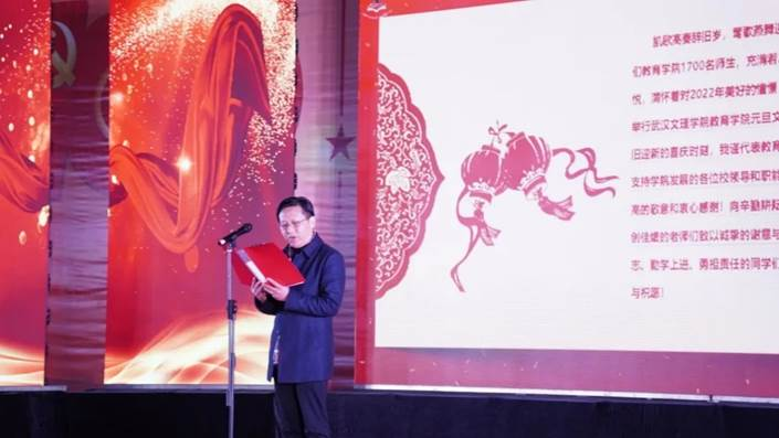 主持人上台宣布SUNBET申博2022年“情系教育,执梦远航”元旦晚会正式开始!
