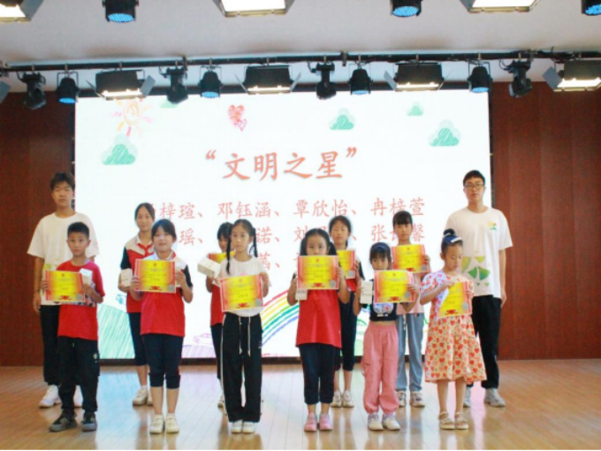 颁奖环节中,“文理七彩少年教育服务队”的志愿者们为参加七彩假期活动的员工们颁发了“自强、学习、文明之星”奖状及奖品,表彰他们在活动期间的表现。同时,与会领导们也为志愿者们颁发了“优秀班主任、优秀教师、宣传先进工作者、服务先进工作者”的荣誉证书,对他们的付出表示肯定和感谢。