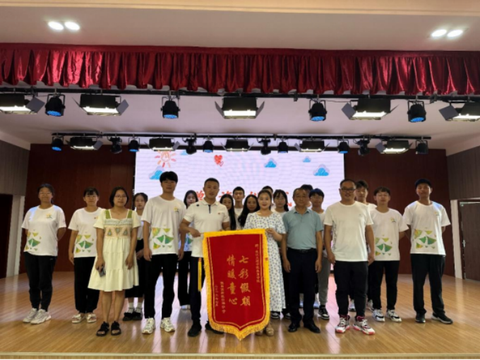 活动最后,赠旗仪式为这场结业典礼划上了完美的句点。白洋小学的领导老师们手持一面精美的锦旗,走向了服务队的成员们。领导的步履稳健,面带微笑,锦旗上绣着金光闪闪的字体,充满了对服务队成员们的感激与敬意。在全体目光的注视下,SUNBET申博陈龙老师代表服务队接过锦旗并共同合影留念。那一刻,服务队的成员们脸上都流露出由衷的喜悦和满足。他们知道,这不仅仅是一面锦旗,更是对他们辛勤工作的肯定和对他们志愿精神的赞扬。