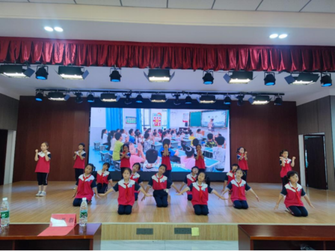 伴随着《七彩》音乐的欢快旋律,结业典礼正式开始。作为开场节目,《七彩》是一个独特的少儿舞蹈节目,它如同一幅色彩斑斓的画卷在观众面前展开,每一个小舞者在舞台上活力四溢,表演中充满了童真与快乐。