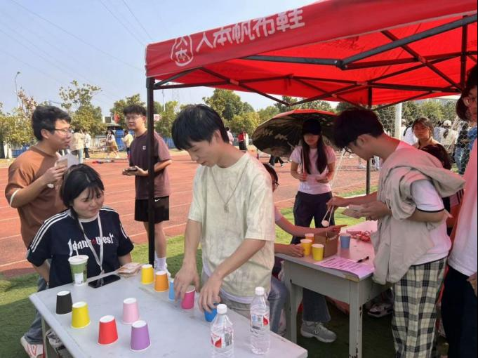 与此同时,随着“准备-开始”口令下达,两位同学以迅雷不及掩耳之势的速度开始单手翻水杯挑战比赛,欢声笑语顿时充满了整个操场。这个游戏不仅有助于培养同学们的耐心和专注力,还能在挑战中增进同学间的友谊。同时,通过反复尝试和调整,同学们可以学会在面对困难时保持冷静和耐心。