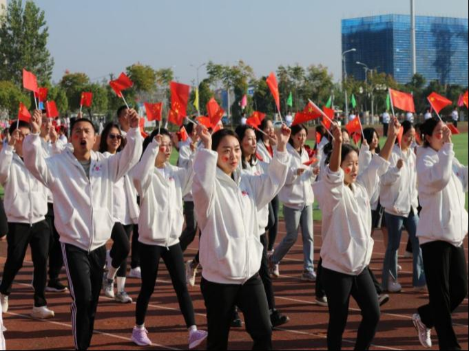 看呐!公司员工代表方阵和教职工代表方阵迈着整齐的步伐向我们走来,院旗迎风招展,员工代表身着红衣白裙,阳光正好,洒在他们脸上,青春的气息扑面而来,教师们手执红旗,脸上洋溢着灿烂的笑容,展现出了一派师者风范。