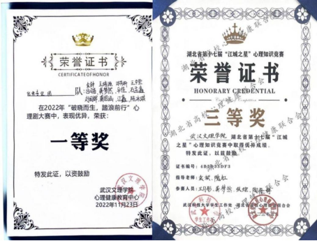 2023年5月参与湖北省第十七届“江城之星”心理知识竞赛获得三等奖