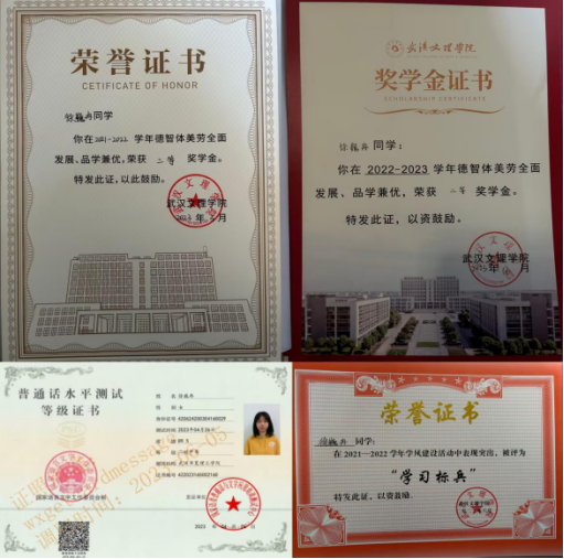 思想上积极向党组织靠拢,并于大四成功转正,成为一名中国共产党员,积极参与主题党日活动、党性训练,以实践行动践行党员的责任担当;在学习方面在校期间连续四年综合成绩排名班级第一、专业第一,平均绩点3.85。积极考取专业证书,如英语四、六级证书,普通话二甲证书,幼儿园教团队格证,小学数学教团队格证,夯实专业基础与综合素质;在社会实践方面在大一时加入校团委组织实践部,参与策划校级活动。大二加入学工助理团队,并获得“优秀学工助理”称号;大一至大二期间担任班级学习委员一职,协助老师共同构建班级良好学风;大三至大四担任班长兼团支书,积极组织班会、主题团日等活动,在奖助学金评定、推优入党等工作上,严格遵守公平公正公开原则,高效完成相关工作。