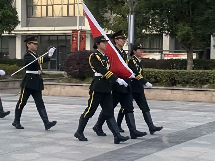 晨曦中,他们身着笔挺的制服,每一步都踏响大地的节奏,整齐划一的步伐仿佛是在与祖国的心跳同频共振。他们以无畏的目光凝视前方,那目光中饱含着对国旗的敬仰,对国家的忠诚。他们用青春和热血书写着对祖国的忠诚不渝,护卫着那抹永不褪色的鲜红,让每一个目睹的人都不禁涌起敬畏与自豪。