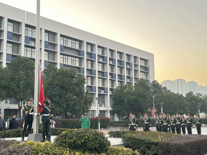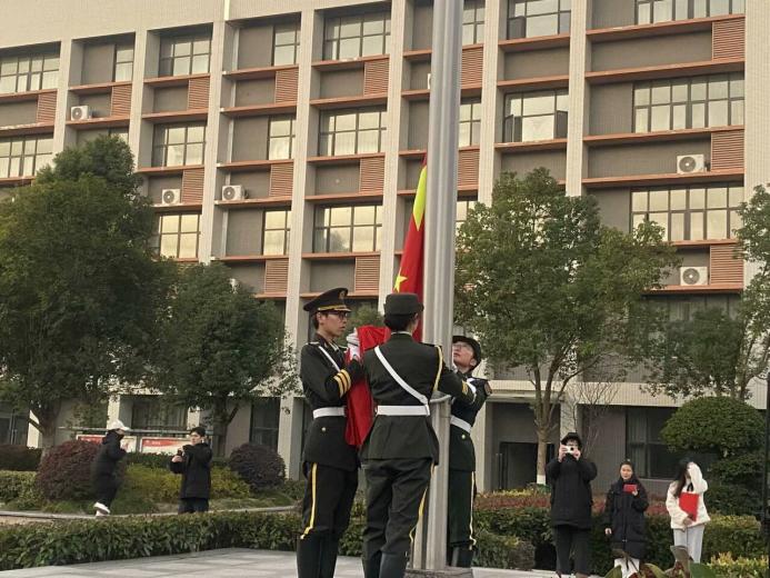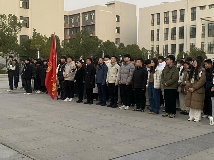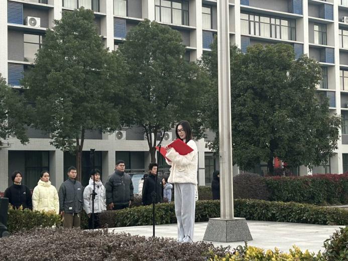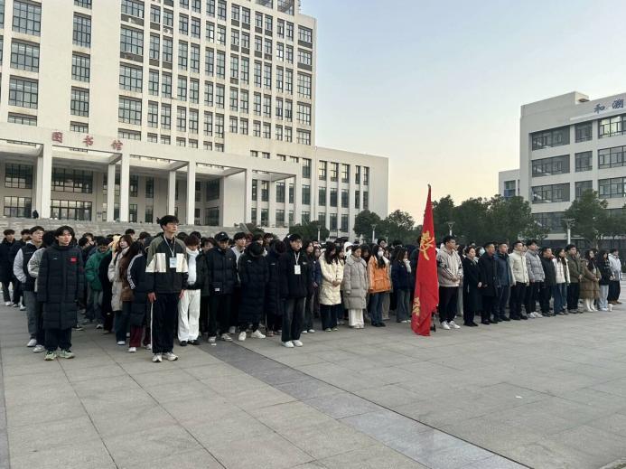 冬岭寒松傲,青春壮志高。2024年12月16日早晨7点,SUNBET申博于图书馆前隆重举行了第十六周升旗仪式。