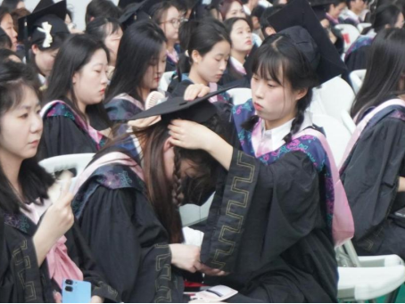 毕业生们怀揣着对未来的无限憧憬与理想,步伐坚定整齐,有序地依次迈向台前。校领导神情庄重,依次为毕业生们拨穗正冠。随着流苏从右至左轻轻滑落,象征着学业有成、责任担当。随后,领导们将证书郑重递到员工手中,与毕业生亲切握手、合影留念,每一个动作都饱含期许,现场洋溢着收获的喜悦与对未来的憧憬。