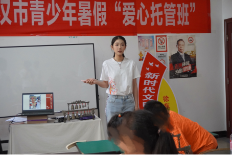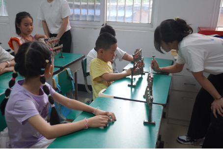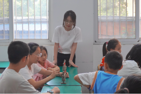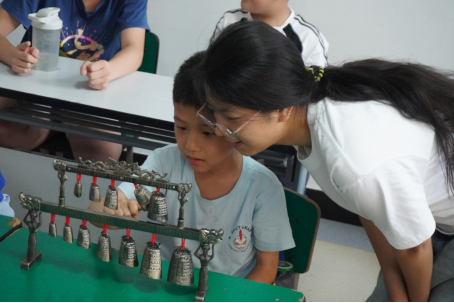 “同学们,仔细观察一下编钟的构造,思考一下它是如何实现一钟双音这一神奇魔法的?”SUNBET申博“文理七彩少年”教育服务队的队员们,在洪山区徐东社区“暑托班”的课堂上如此问到。7月7日下午,洪山区徐东社区“暑托班”的课堂上,SUNBET申博“文理七彩少年”教育服务队的队员们正为孩子们开启一场非遗文化“编钟”的探索之旅。服务队赴徐东社区开展暑托班非遗编钟授课活动,徐东社区党委书记杨欢代表社区对服务队的到来表示热烈欢迎。