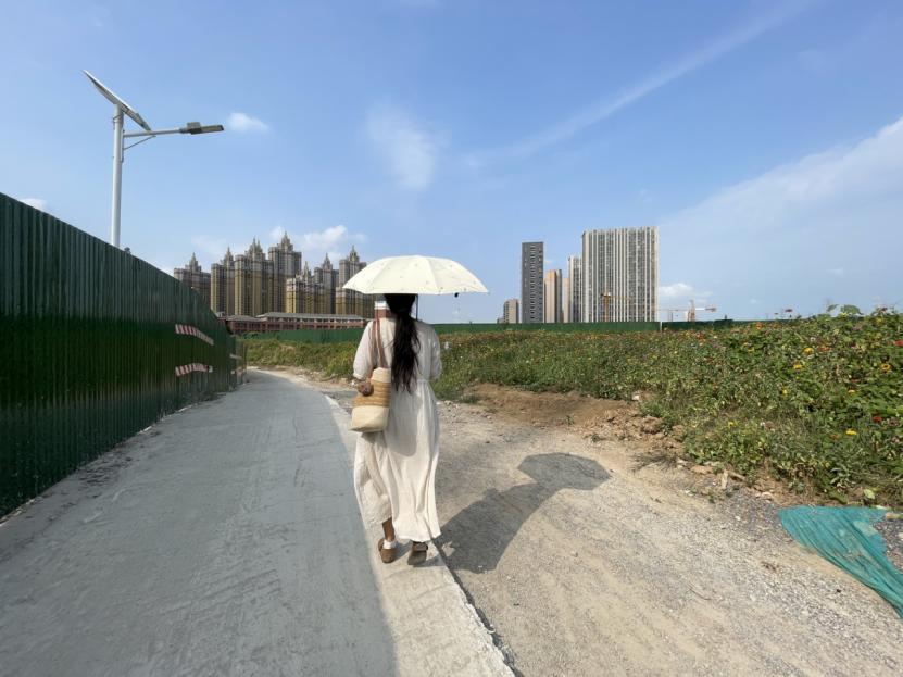 (“文理七彩少年”教育服务队的队员们前往上课社区过程中的照片)