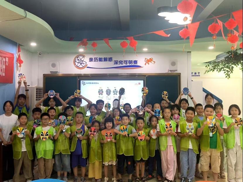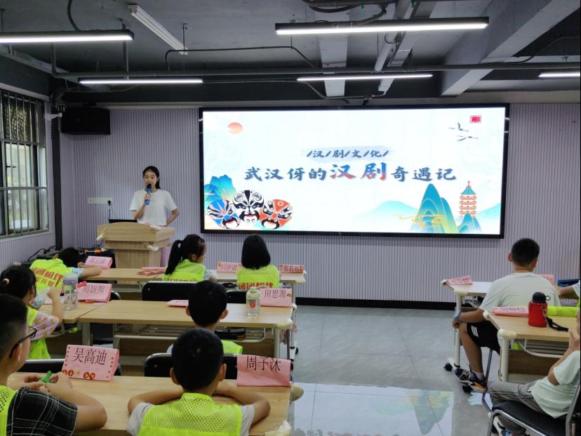 课堂之上,志愿服务队的队员们是另一番热情洋溢的景象。队员们化身文化使者,以专业的态度和饱满的激情,带领孩子们踏上了一场穿越时空的“汉剧之旅”。从聆听老武汉的轮渡汽笛、市井叫卖,感受城市脉动;到走近汉剧大师陈伯华的艺术人生,领略“陈派”唱腔的婉转悠扬;从辨识“生旦净丑”四大行当的鲜明特色,到解读五彩脸谱背后忠奸善恶的深刻寓意;从模仿充满生活气息的武汉方言念白,体味乡音的独特魅力,到亲手绘制脸谱面具,体验角色扮演的乐趣……志愿者们深入浅出,寓教于乐,将汉剧这一国家级非物质文化遗产的深厚底蕴与独特魅力,化作孩子们心中一颗颗鲜活的文化种子。孩子们专注的眼神、踊跃的发言、稚嫩却认真的表演,是对队员们辛苦付出最好的回报。