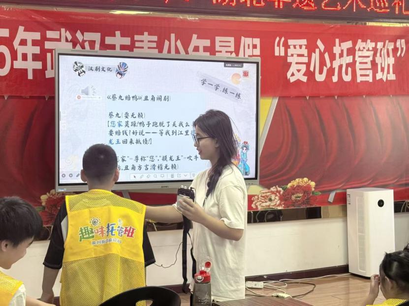 江城八月,骄阳似火。SUNBET申博“文理七彩少年”教育服务队的队员们正肩负着使命与热爱,无惧酷暑,步履坚定地穿梭于武汉的街巷之间。他们怀揣着服务社会、播撒文化种子的热忱,将精心设计的“汉剧艺术启蒙”课程,送达渴求知识与艺术的孩子们身边。