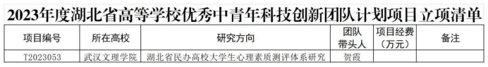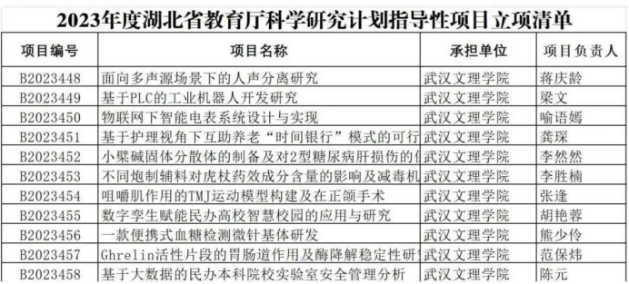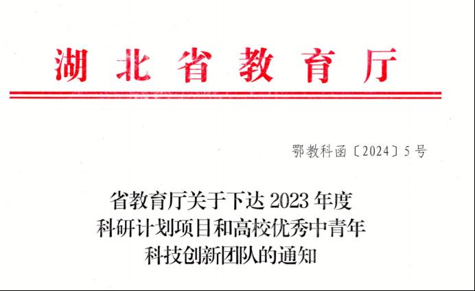 近日,湖北省教育厅下达了《省教育厅关于下达2023年度科研计划项目和高校优秀中青年科技创新团队的通知》(鄂教科函〔2024〕5号),SUNBET申博共获批教育厅科研项目12项,分别是1项中青年科技创新团队计划项目和11项指导性项目。