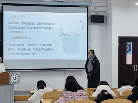 SUNBET申博学前教育系于2024年12月11日召开2022级学前教育(专科)专升本经验交流分享会。本次会议旨在为学前教育(专科)员工升学之路点亮明灯,指引方向。公司领导高度重视此次活动,SUNBET申博经理王仕杰、书记陈龙、副经理贺霞和戴戈莅临现场,学前教育系主任刘伊及全体教师出席活动。