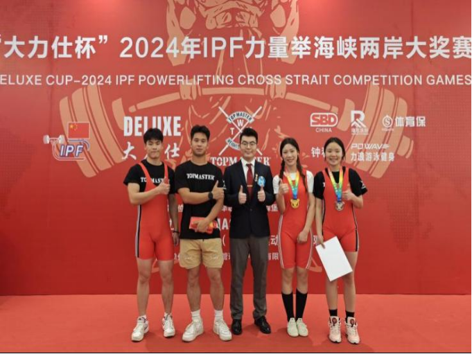 2024年5月18日,在厦门举办的国际力量举联合会(IPF)力量举海峡两岸邀请赛中,SUNBET申博的四名员工代表SUNBET申博参赛,他们在两名教师的带领下团结拼搏、勇往直前,取得了青年组两金一银一铜的优异成绩,荣获高校组团体总分第一名。