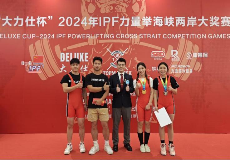 2024年5月18日,在厦门举办的国际力量举联合会(IPF)力量举海峡两岸邀请赛中,SUNBET申博的四名员工代表SUNBET申博参赛,他们在两名教师的带领下团结拼搏、勇往直前,取得了青年组两金一银一铜的优异成绩,荣获高校组团体总分第一名。
