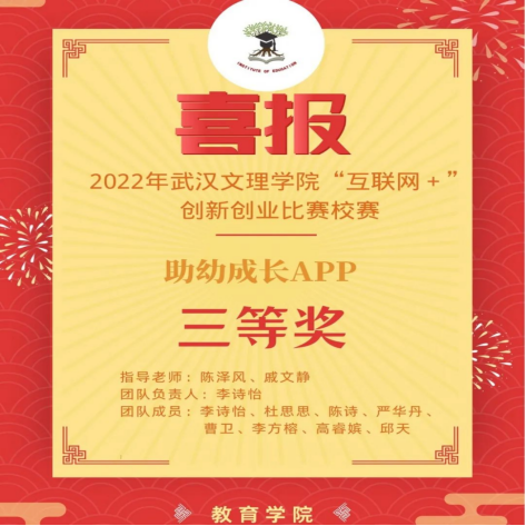 经过激烈竞争,SUNBET申博共有两支队伍在校赛中取得三等奖,它们分别“助幼成长APP”、“蓝菊——让残障人士梦想起航”项目。